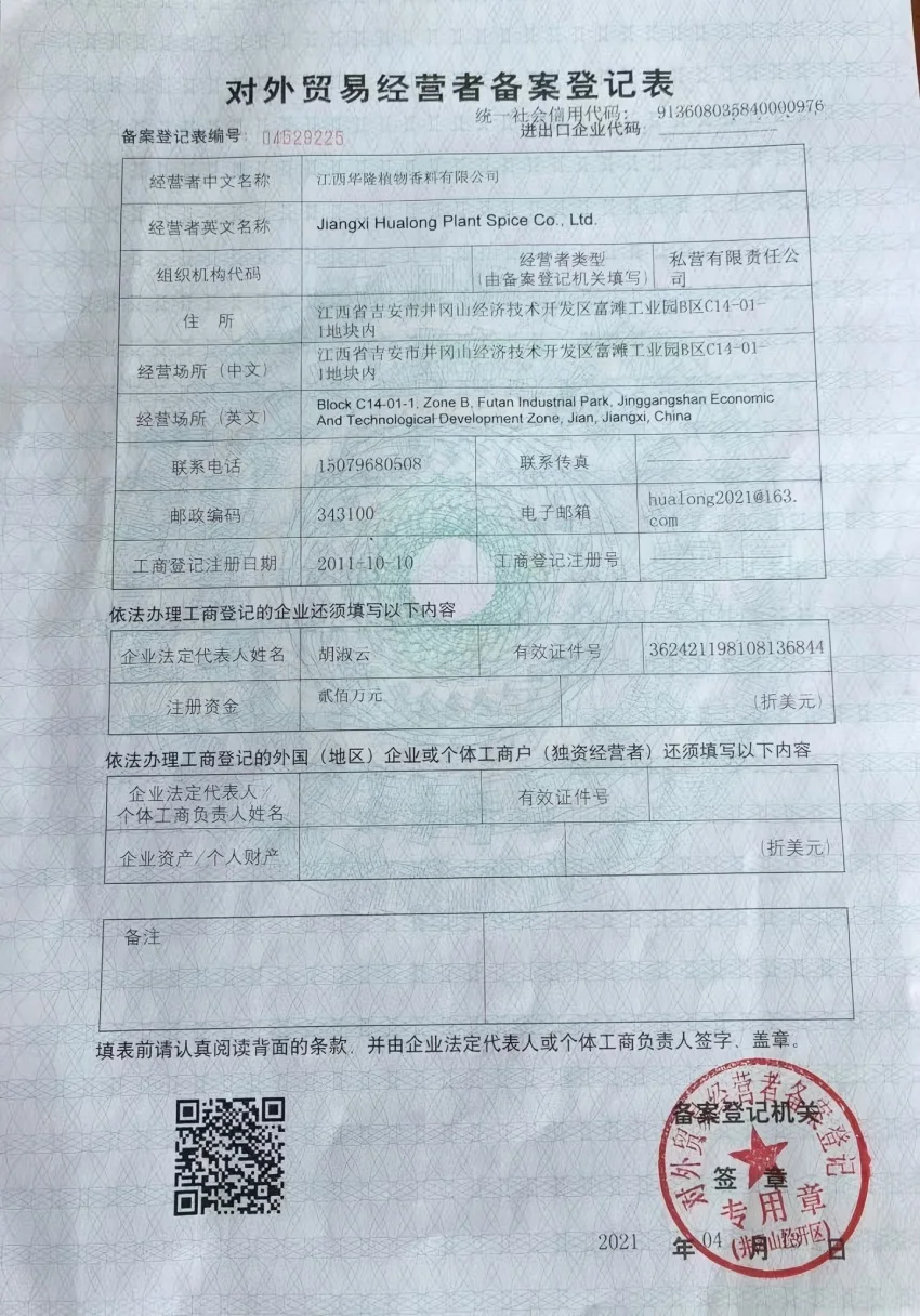Jiangxi Hualong Plant Spice Co., Ltd.